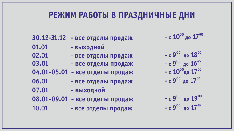 ГРАФІК РОБОТИ ВІДДІЛІВ ПРОДАЖУ З 30.12.19 ПО 10.01.20